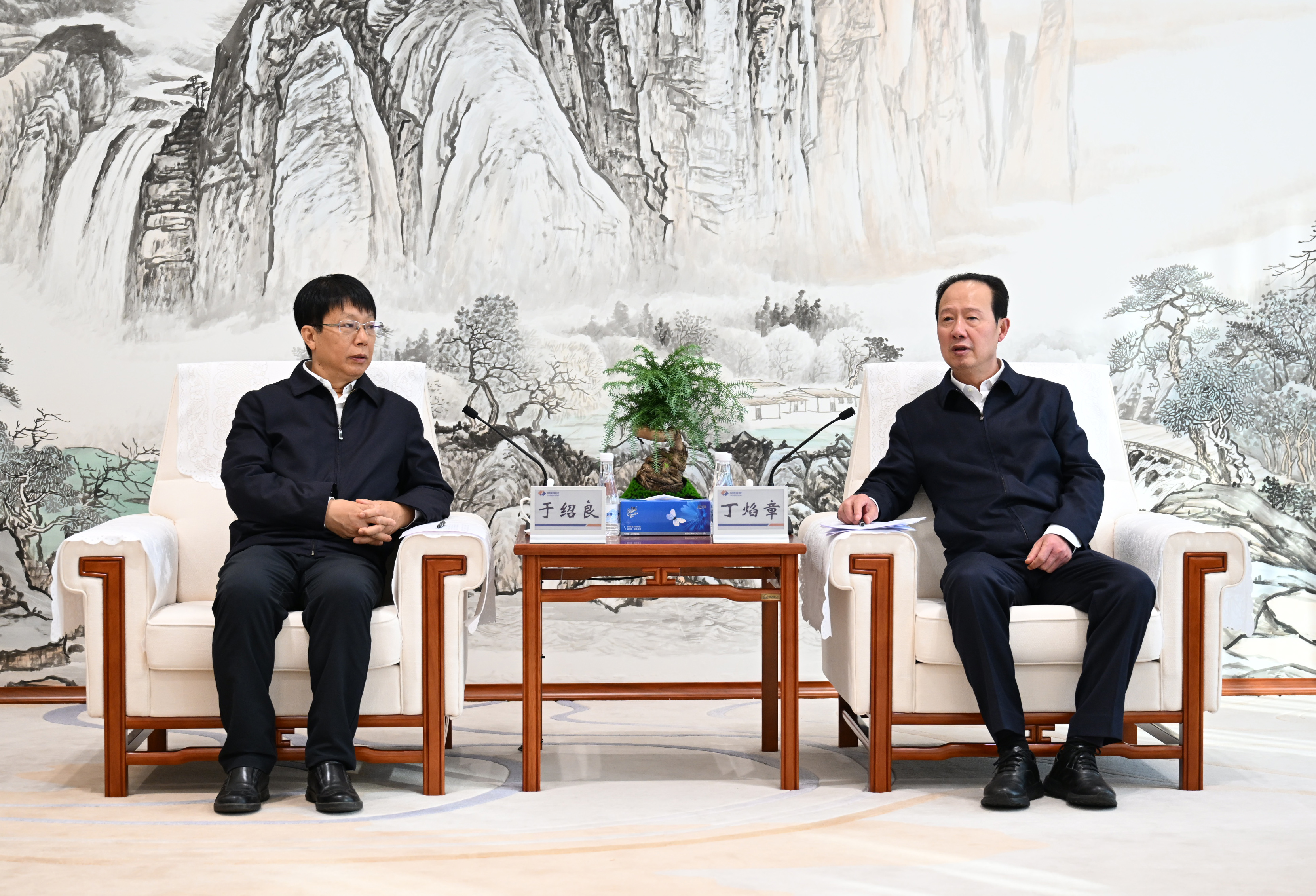 丁焰章與人民日?qǐng)?bào)社社長(zhǎng)于紹良會(huì)談